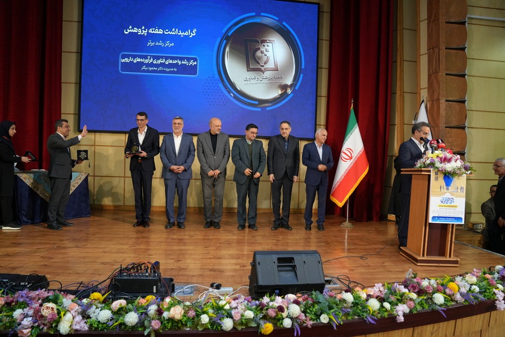 مرکز رشد فرآورده های دارویی | معرفی شرکت نانوفناوران نارین طب به عنوان شرکت فناور برتر دانشگاه علوم پزشکی تهران در مراسم روز پژوهش
